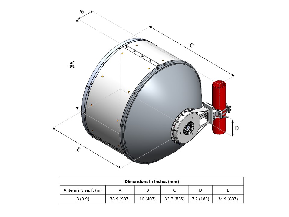 0.9m | 3 ft Sentinel® High Performance Antenna, dual-polarized, 24.250 – 26.500 GHz