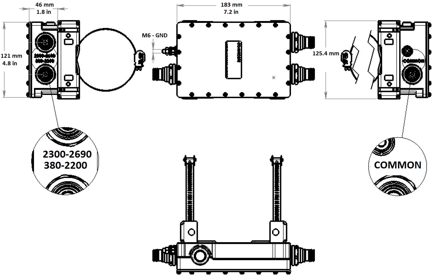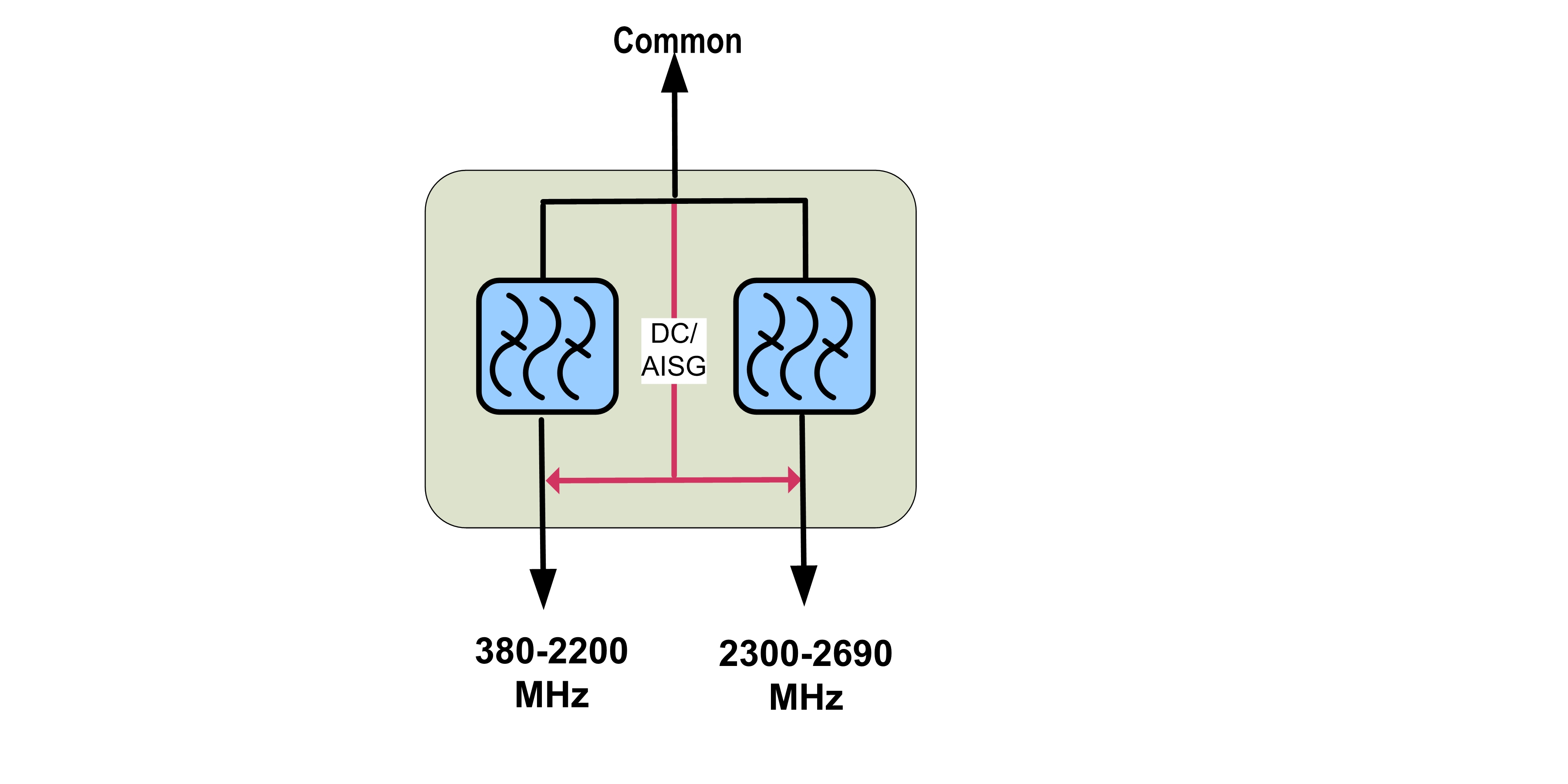 - Extremely wide lower passband (380-2200 MHz) provides flexibility for various combining schemes
