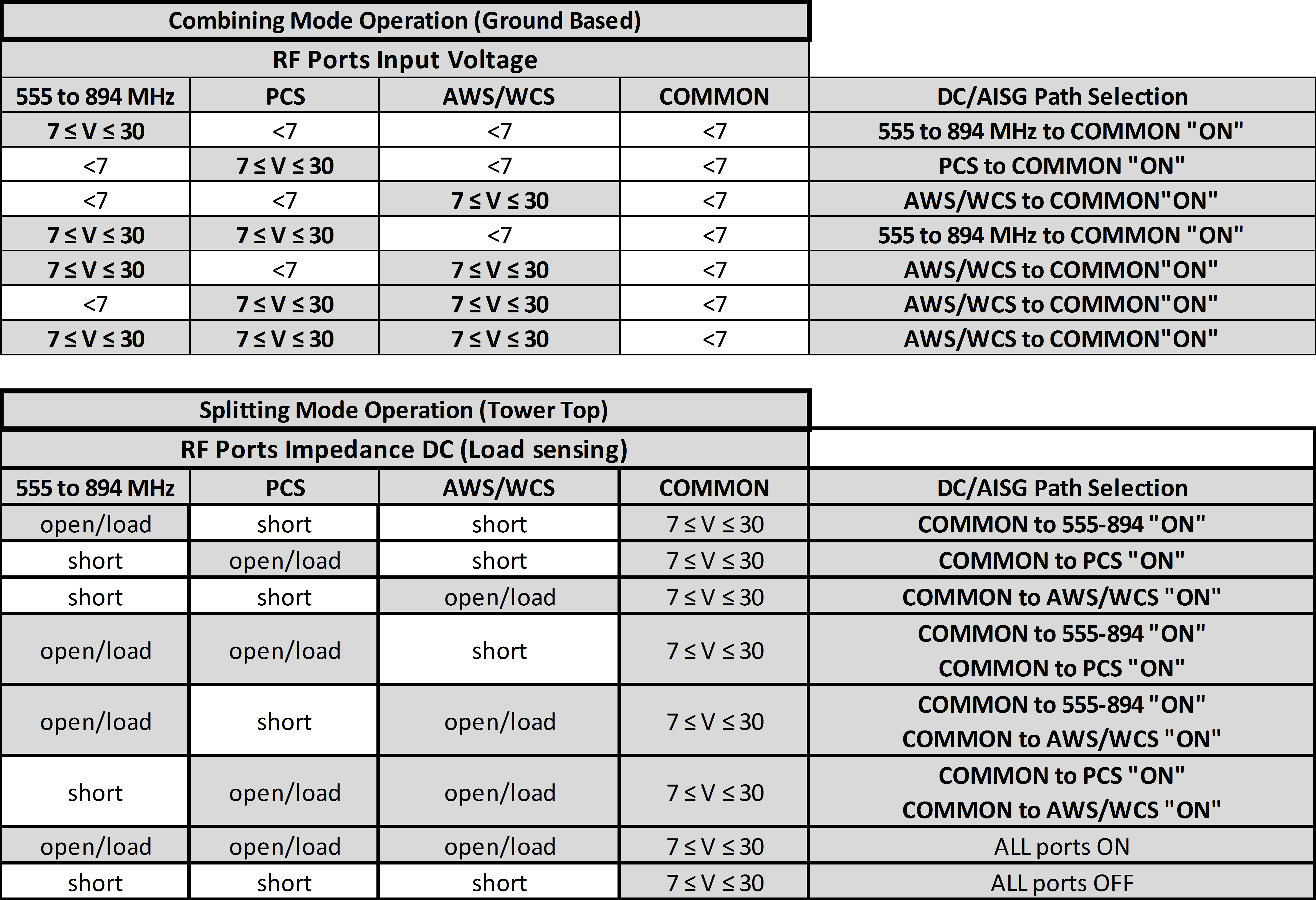 | dc/AISG Pass-through Path | See logic table |