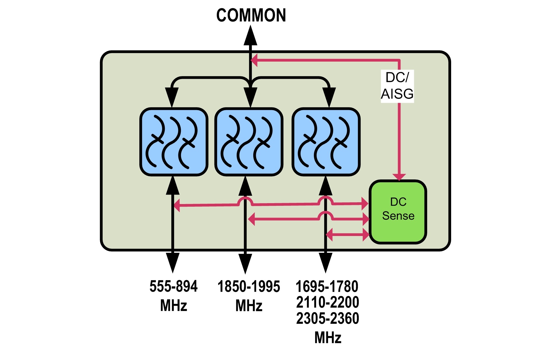 Triplexer, 555-894/PCS/AWS+WCS, dc Sense,4.3-10