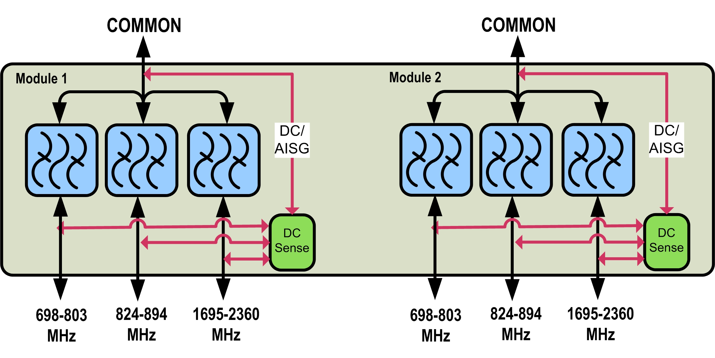 Twin Triplexer 700/850/1695-2360,dc Sense, 4.3-10
