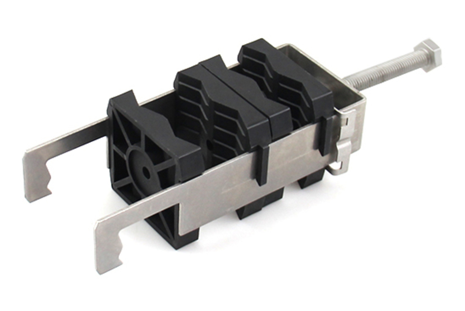 KwikClamp™ Hanger for power & fiber cables, two 7-22 mm holes (alongside each other), double block; includes hardware