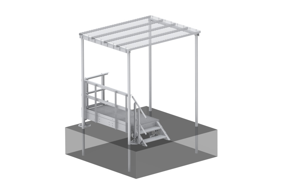 Custom Equipment Platform Kit, 4 ft x 8 ft base with steps & handrail plus 8 ft x 10 ft Ice Canopy with Burial posts