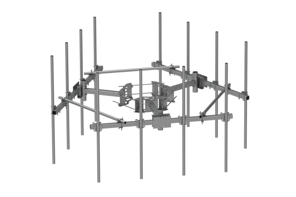Monopole Co-location Square Tube T-Frame kit for 15 in to 50 in OD Monopoles, 10 ft face, includes (12) 2-3/8" x 96" pipes