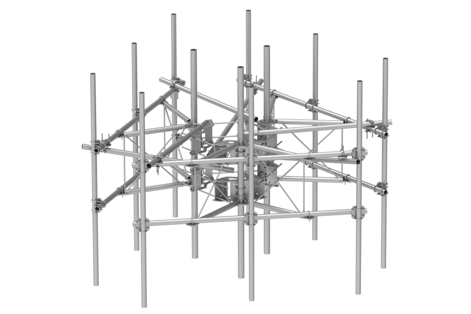 G23RHDX Monopole Sector Frame with spine extension for RRU Mounting, 10.5 ft x 2.88 in OD face pipes, includes nine 2.88 OD x 120 in antenna pipes
