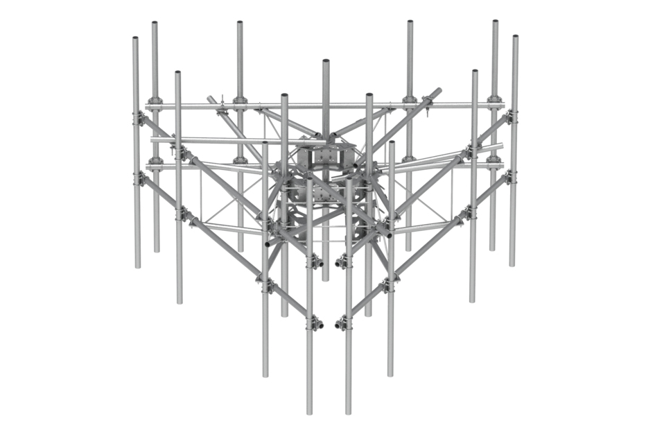 G23RHDX Monopole Sector Frame with spine extension for RRU Mounting, 14.5 ft x 2.88 in OD face pipes, includes fifteen 2.88 OD x 96 in antenna pipes
