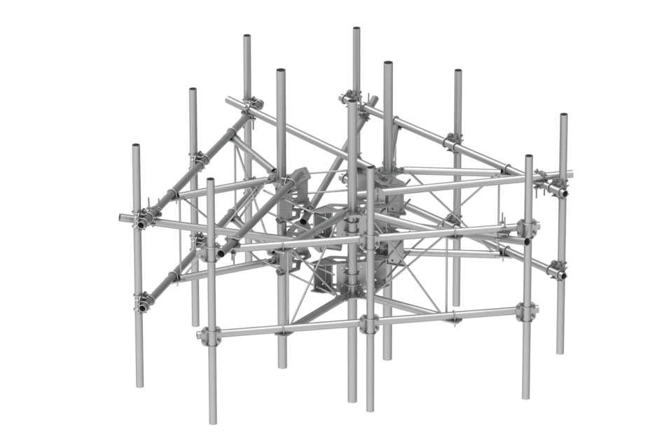 G23RHDX Monopole Sector Frame with spine extension for RRU Mounting, 14.5 ft x 2.88 in OD face pipes, includes nine 2.88 OD x 96 in antenna pipes
