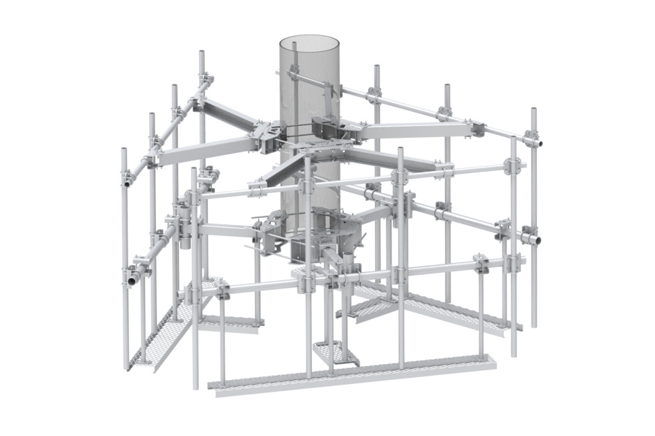Monopole T-Frame kit with VSR Reinforcement and Work Platforms, 15 in to 50 in OD, 12 ft 6 in face, includes (12) 2-3/8in x 96in pipes