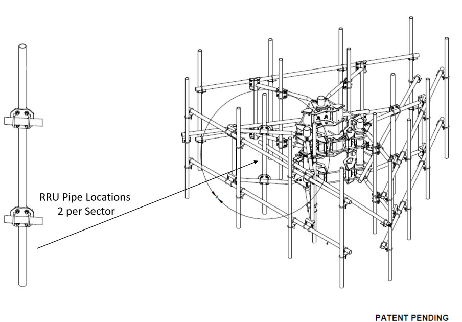 G2 Series High Capacity 3-Sector Monopole Frame, 12 ft 6 in 2.88 in OD face pipes, includes twelve 96 in antenna pipes plus six 96 in RRU pipes; For patents, see www.cs-pat.com.