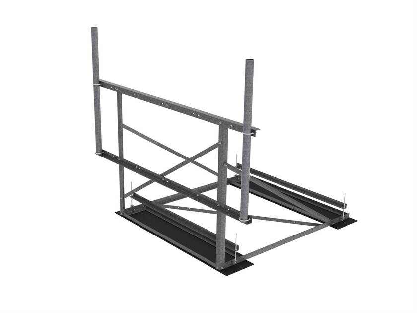 Non-Penetrating Roof Frame, 10 ft face, two 3-1/2 in OD x 72 in pipes