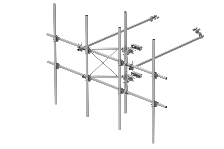 G23RHDX Tower Sector Frame with spine extension for RRU Mounting, 12.5 ft x 2.88 in OD face pipes, includes four 2.88 OD x 120 in antenna pipes